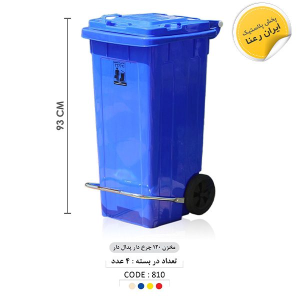 مخزن زباله پلاستیکی 120 لیتری چرخدار و پدال دار در ارتفاع 93 سانتی متری تولید میشود .