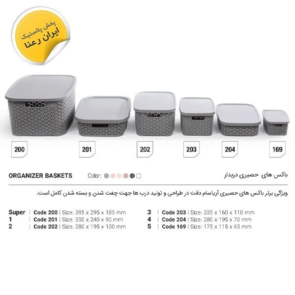 باکس حصیری دربدار سوپر آریسام در ابعاد 395*295*185 میلی متر تولید میشود.