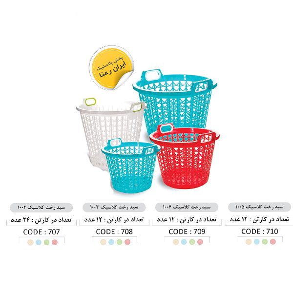 سبد رخت کلاسیک در چهار سایز مختلف تولید میشود و در یک کارتن سبد رخت کد 1005 دوازده عدد و در سد رخت کد 1004 دوازده عدد و