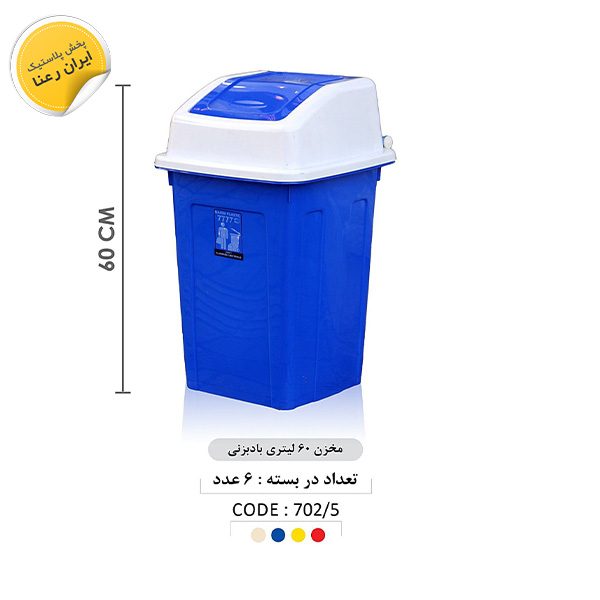 مخزن زباله 60 لیتری بادبزنی در ابعاد 60 سانتی متری می باشد و از نظر کیفیت درجه بالایی دارد .