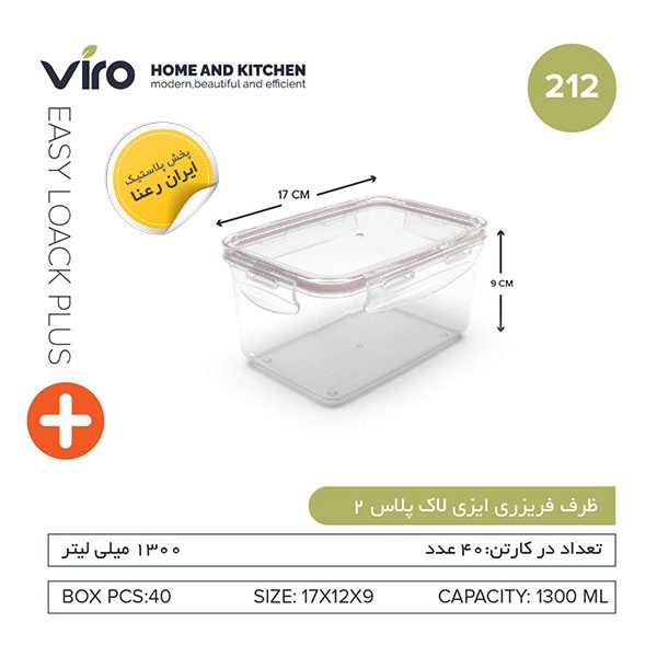 ظرف فریزری ایزی لاک پلاس 2 در ابعاد 17*12*9 سانتی متر تولید می شود.