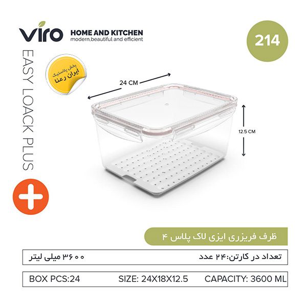 ظزف فریزری ایزی لاک پلاس 4 در ابعاد 24*18*12.5 سانتی متر تولید می شود.